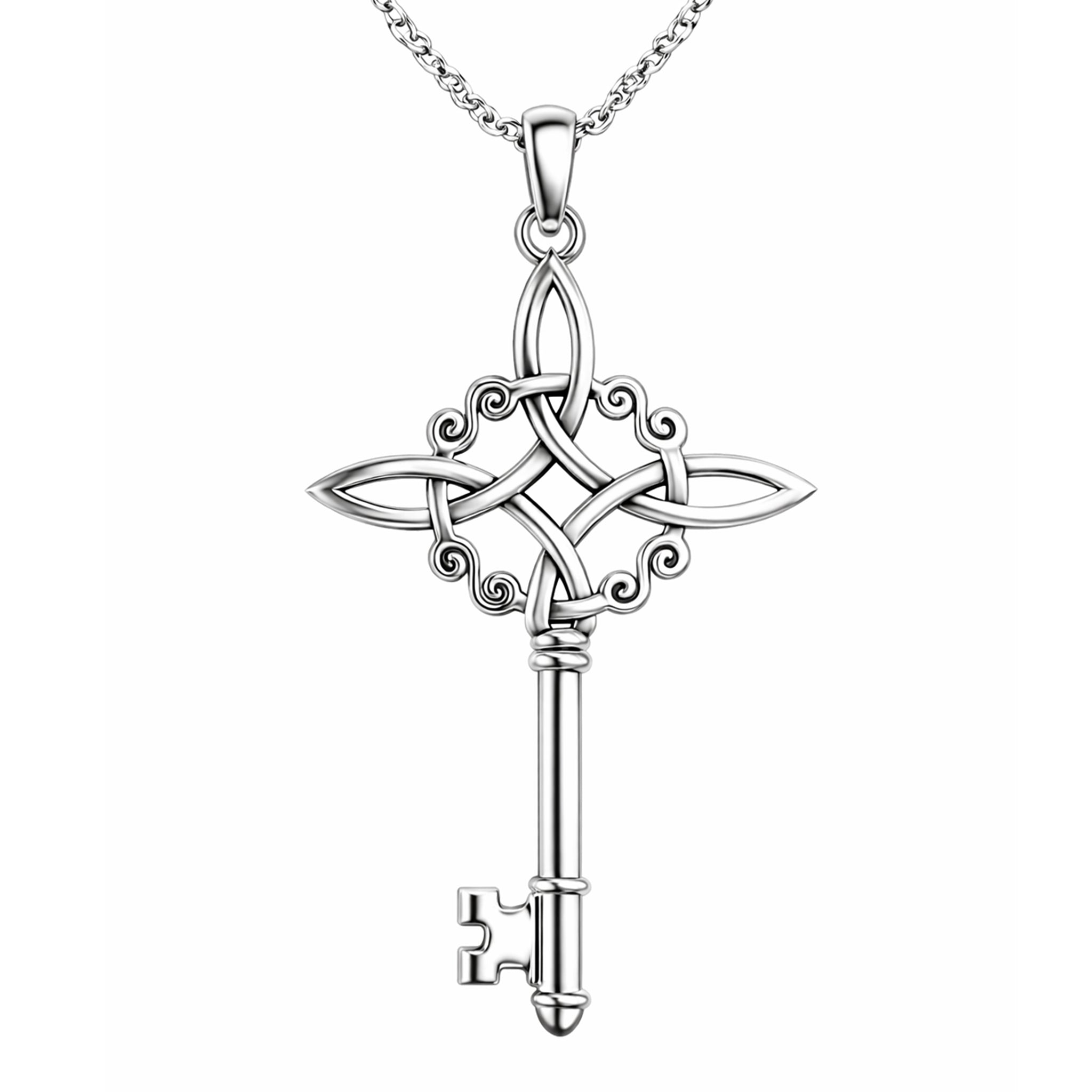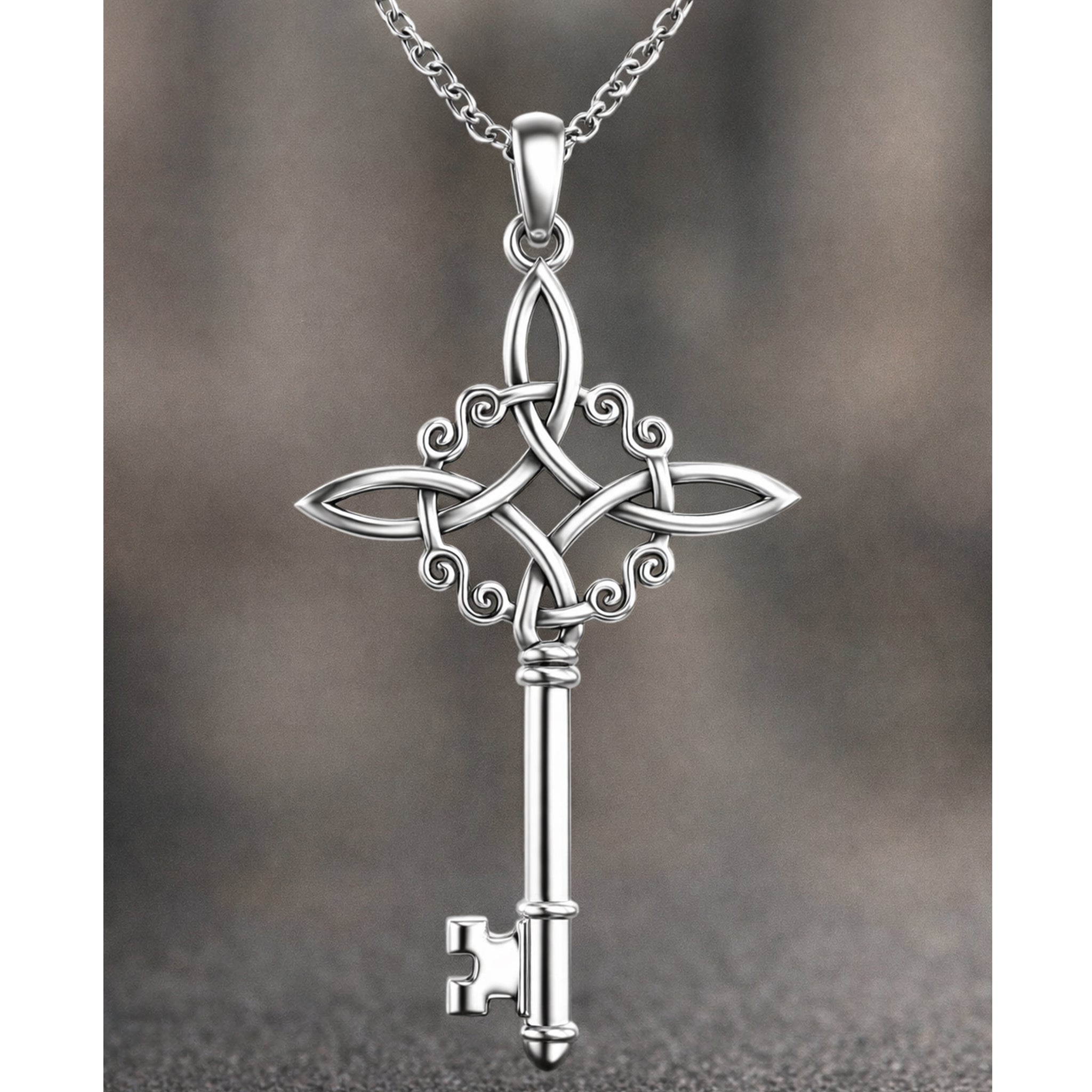 • Load image into Gallery viewer, Silver Witch Knot Key Necklace